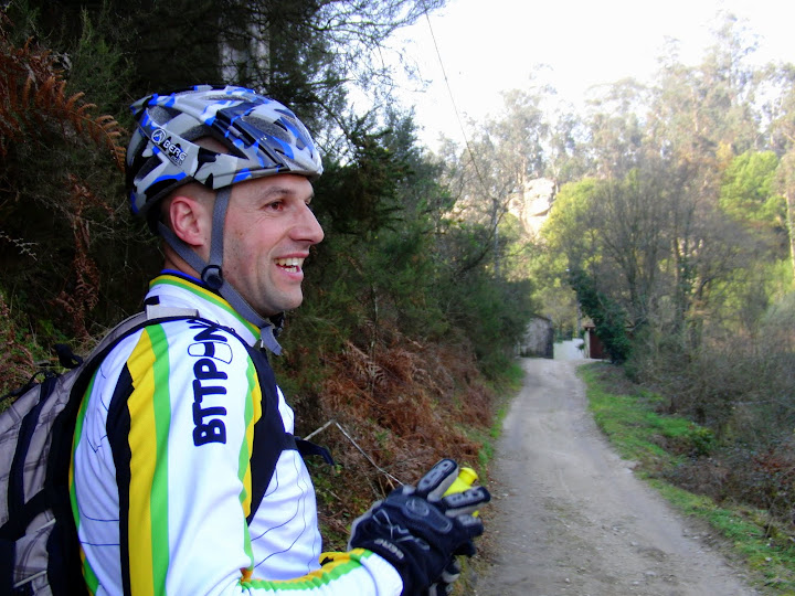 A entrada para os trilhos de terra deu-se no Monte Santa Catarina em Famalicão, aí deparamos-nos com muita arvore ardida, e claro os “vampiros” da lenha lá estavam, dizia um: “bota fio!” e responde um pinoco: “limpa o trilho, tá cheio de paus!!” (há pessoas que estavam também caladas!). Este monte é bem bonito, e pelo trilho escolhido fomos sair junto a umas vivendas, já perto de Gondifelos. Dizia agora o nosso Redleh: “vem aí uma descidinha de downhill”, e de facto no GE tem uma foto dessa zona com esse título, a descida é fixe, mas nada tem a ver, só se for dóniló … a descida levou-nos junto a uma pequena ponte sobre o Rio Este, zona muito convidativa e agradável. Seguíamos agora em direção a Balazar onde passamos junta à casa da Santa Alexandrina, e novamente entravamos no monte, era altura para comer uma barrita, o Barte recebia mais um telefonema (e não foi o último, e não é muitos e não são poucos, não é…bastantes). E claro, não podiam faltar os senhores da caça, achamos estranho ao sábado de manhã ver tantos caçadores, mas assim vai o nosso país. Tínhamos alcançado agora Casais, subimos numa zona que já por lá tínhamos passado num Manobras, fomos depois sair á rua da Cividade, não sem antes termos ajudado dois colegas que estavam naquela zona atracados a precisar de ar para um pneu (bendita bomba de ar do Careca). Fomos então em direção á ponte dos arcos e seguimos pelos Caminhos de Santiago, mais á frente chegávamos novamente junto ao rio na zona de Touguinhó, estava uma manhã a correr muito bem, já ia cheirando a mar, poucos minutos depois o joelho do Zéktm deu de si e fez dor ao pedalar, mas já estávamos a chegar ao convento de Santa Clara, junto á ponte sobre o Rio Ave, ponte esta com grades feita por uma empresa muito prestigiada, e mais não dizemos… e vai daí e estavamos nós a ver o mar e a saciar-nos com uma pizza no Carciofi. Findo o almoço em grande, fomos para a zona photo show, claro junto ao forte de São João. O regresso a casa foi realizado primeiro pela travessia da ponte do comboio sobe o Rio Ave, lá seguimos junto ao rio passando pela localidade bem conhecida do BTT, Retorta do famoso Raid da Lama. Entramos nos trilhos em terra e seguimos em direção á capela Nossa Senhora do Padrão, em Touges, descemos e fomos sair á Azenha em Ponte do Ave, aí passamos a ponte e seguimos pelos Caminhos de Santiago. Fomos avançando, sempre ladeados pelo Rio Ave, e cá esta, o Barte numa chamada: ”esse gajo não é homem, é um batata!!!”. Lá íamos a pedalar, Ferreiró coisa e tal e não é que ao fundo avistamos uma empresa junto ao rio “… nem aqui me livro disto…” ia palrando um dos elementos. Largamos o rio e subimos em direção ao famoso moinho de vento, fomos dar junto ao gimnodesportivo da Aldeia Nova, passamos á porta de casa de um amigo do BTT ( O Presidente dos Índios do Monte), mas não estava, e nós cheios de sede. Apanhamos mais abaixo uma parte já nossa conhecida no recente Manobras e daí até casa foi um tirinho.