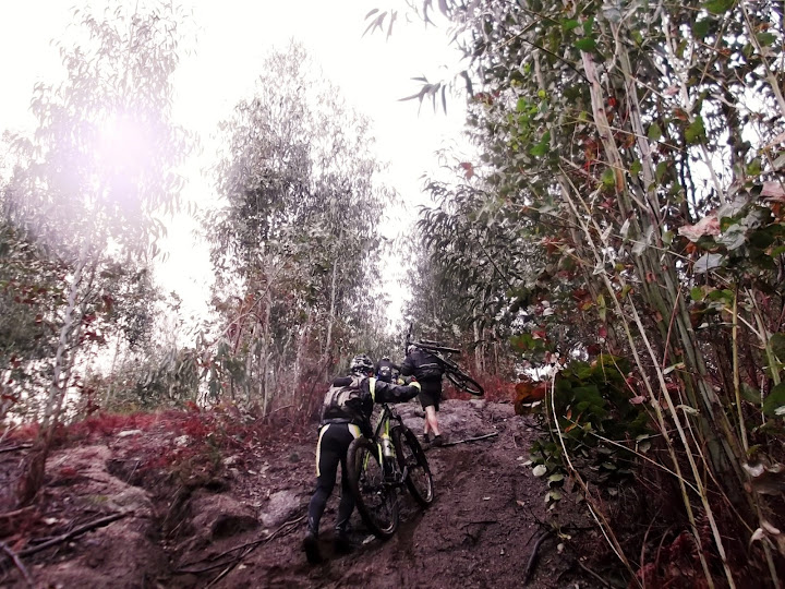 Mais um passeio onde a vontade de sair por esses trilhos fora consegui superar as condições meteorológicas. Além de três persistentes Pinocos apareceram o Filipe, o Vítor, o José Carlos e o Carlos. E mais tarde o Rui, que não teve hoje colega de mesma coragem, colou-se a nós e acompanhou-nos nesta manhã de altos e baixos climatéricos, altos e baixos sinais do GPS e altos e baixos desníveis.