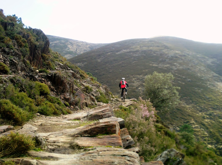 Por entre forte neblina começamos o "esquecimento" dos primeiros 20 kms, passando por Santa Maria do Monte, Ameixeira, Merujal e primeiro emblemático local deste passeio a Frecha da Mizarela (queda de água no Rio Caima com cerca de 60 metros). Após esta primeira paragem com verificação mais exaustiva da paisagem continuávamos na subida e por Albergaria da Serra chegaríamos ao grande planalto da serra. Podemos verificar também a particularidade da textura do Penedo das Broas antes de chegarmos à Casa de Abrigo do Vidoeiro. A temperatura era no momento muito agreste mas a neblina tinha já desaparecido e era-nos possível observar tudo o que nos rodeava. Após intensa subida tínhamos agora aquilo que rapidamente podemos verificar que seria um doce envenenado pois iríamos descer muito para logo subir certamente. A descida até Covelo deixou para trás, Tebilhão, Cabreiros e Candal. Seguiamos para nordeste da Serra da Freita e ficamos com menos um elemento pois o amigo Carlos por outros compromissos forçou a retorno a Arouca por Cortegaça saindo na Fuga 1. Despedidas feitas tomávamos direcção a Regoufe, aqui tínhamos várias indicações que em breve atingiríamos Drave, a aldeia perdida na cova entre a Serra da Freita e a de São Macário. A chegada à Aldeia de Drave foi sem duvida o momento alto do passeio, pela imponência da paisagem pelo carisma do local, o facto de lhe chamarem Aldeia Mágica diz tudo. Foi este o local por nós aproveitado para maior pausa do dia para reforçarmos energias, desta vez éramos surpreendidos pelos amigos Miguel e Pessegueiro que nas margens de um ribeiro do Rio da Drave, ou no próprio, reforçavam-se com massa e lasanha.